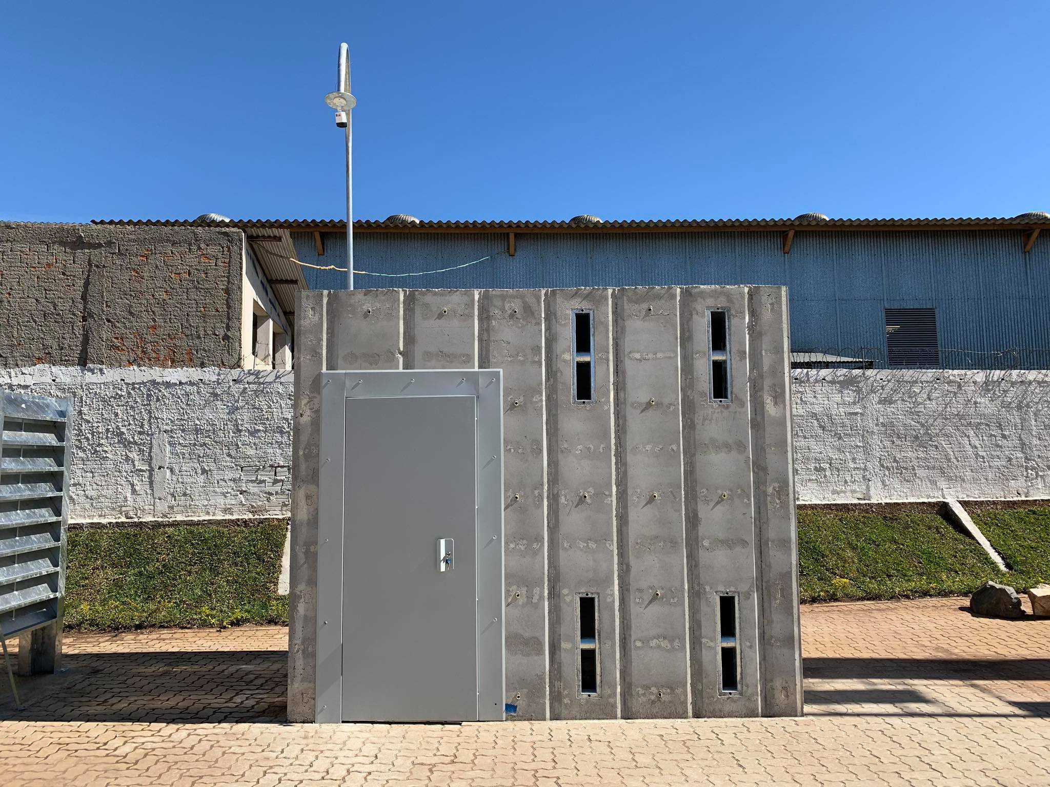 Projetada para oferecer resistência e segurança superiores, esta solução conta com concreto usinado PEI 4, garantindo resistência incomparável. A malha de aço de 3/8 adiciona uma camada extra de proteção, complementada por uma porta de alta segurança equipada com quatro travas de aço.